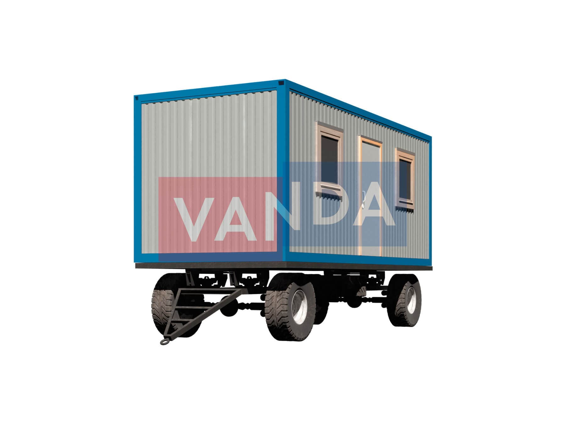 Прицеп бытовка на шасси 5,85х2,4 изготавливается из несущего каркаса (верхняя и нижняя обвязка): швеллер 100х50х3 мм., угловые стойки: сложно - гнутый угол 90х90х3 мм., крыша блок-контейнера: металл сварной 0,9-1 мм., качественная наружная отделка: оцинкованный профлист, внутренняя отделка стен: ЛДСП, внутренняя отделка потолка: Панели ПВХ, вспомогательный деревянный каркас (стены): брусок 40х75 мм., лаги пола: обрезная доска 40х100 мм., лаги потолка: обрезная доска 40х100 мм., выполнено утепление: Минеральная вата «ISOVER» – 50 мм. и пароизоляция: плёнка техническая, черновой пол состоит из: обрезная доска 20 мм. (2 сорт), чистовой пол покрыт: ДСП строительное 16 мм., отделка пола выполнена из качественных материалов. Контейнер комплектуется окнами: деревянное, двойное остекление 800х1000, входной дверью: ДГ 21-8 обшита снаружи оцинкованным листом, врезной замок и внутренними дверями: ДГ 21-8 (при наличии перегородки). Если в БК присутствуют перегородки, то для них используется: брусок 40х50 мм.